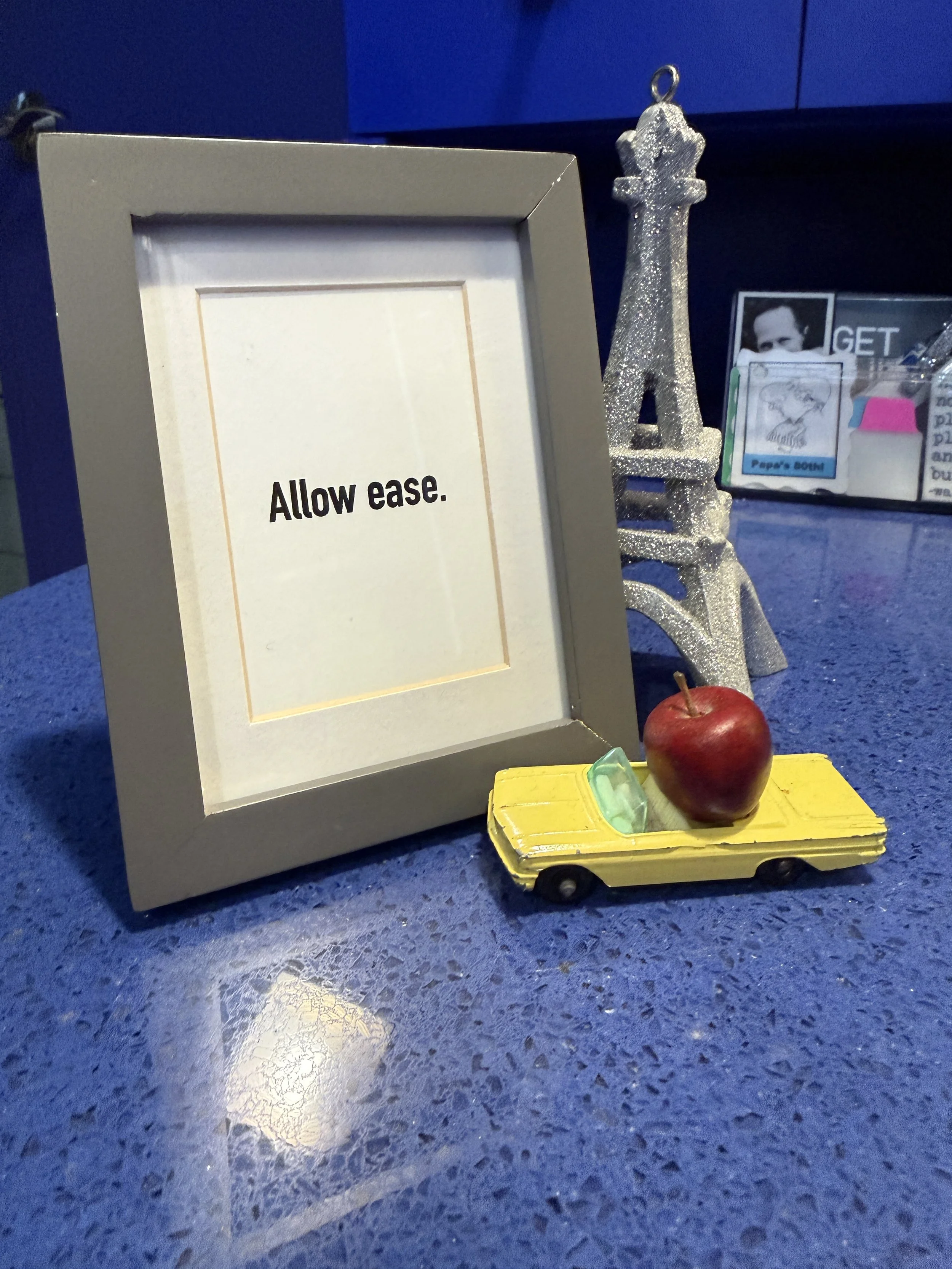 This week, I tweaked the message. My focus for 2026 will be “Allow ease.” I will meet each day, including the challenges, joys, tasks, commitments, and changes I seek, and those thrust upon me, with more compassion and ease.